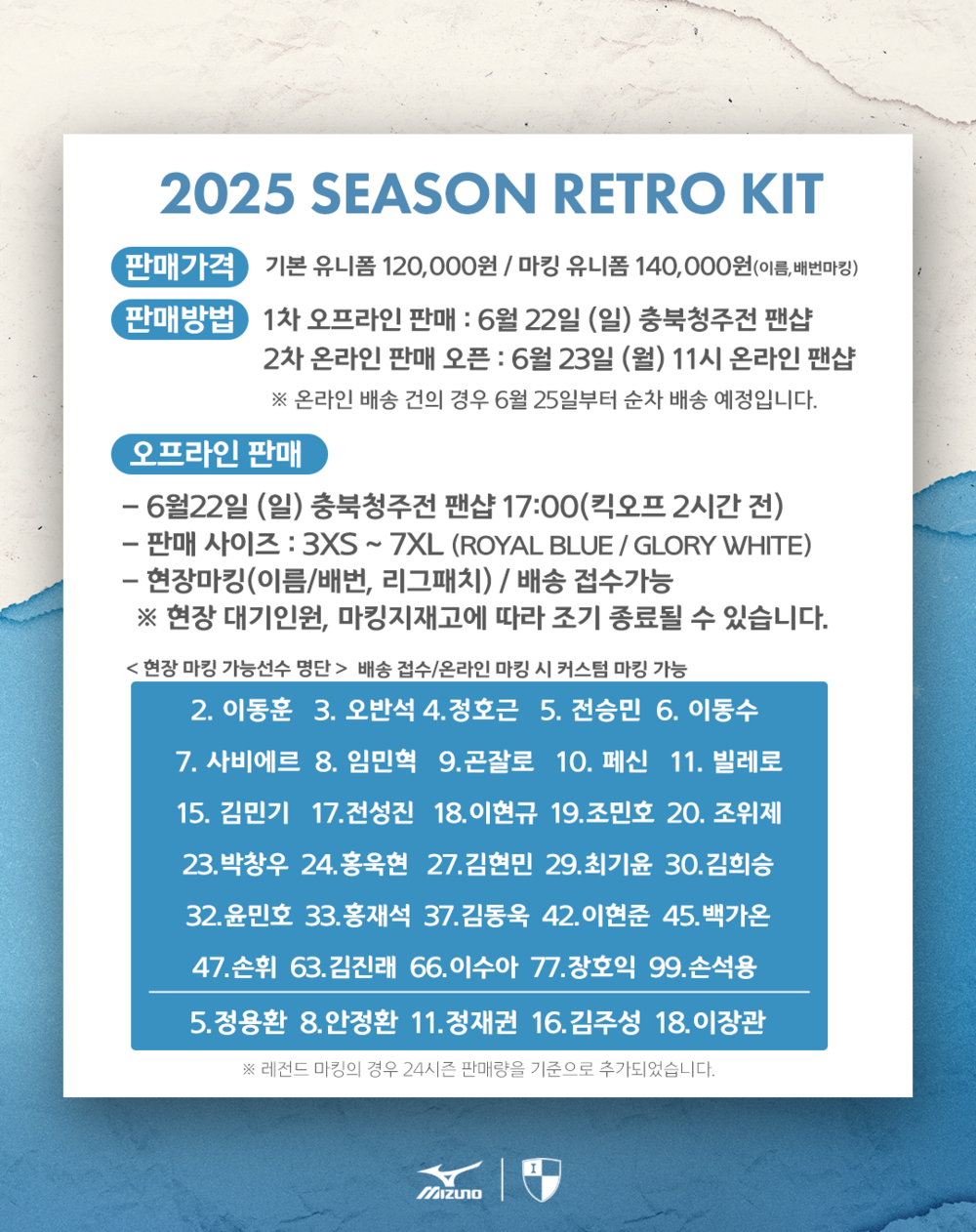 ※ 마킹(선수 이름&번호, K리그 패치) 작업 이후에는 교환, 환불이 불가합니다.