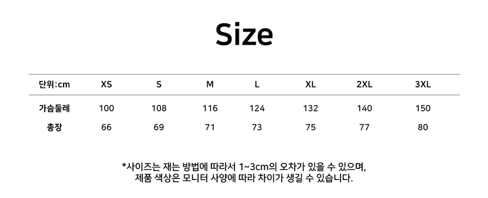 *총장은 모자(후드) 길이를 제외한 사이즈 입니다.